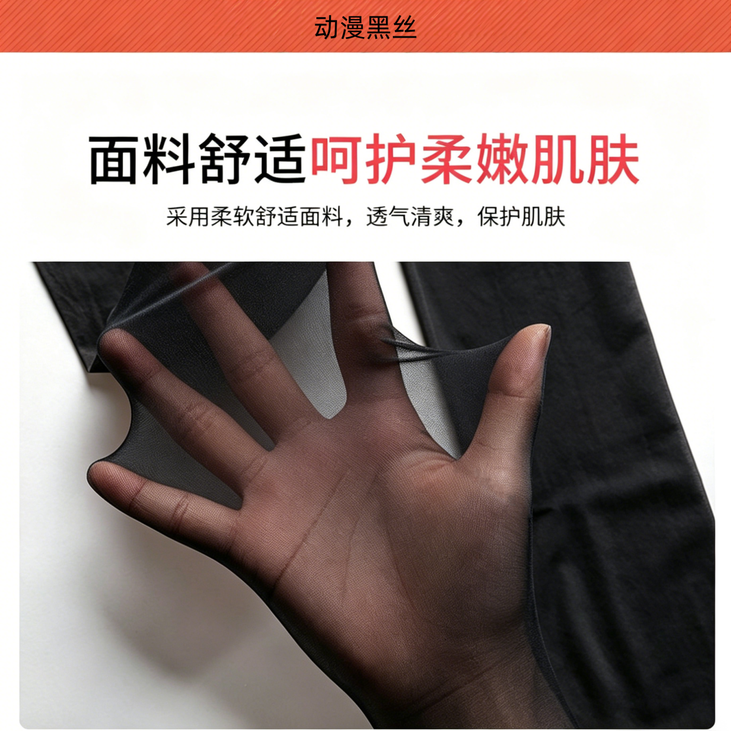 艾昕尔动漫黑丝超薄不掉档防勾丝性感黑色连脚丝袜
