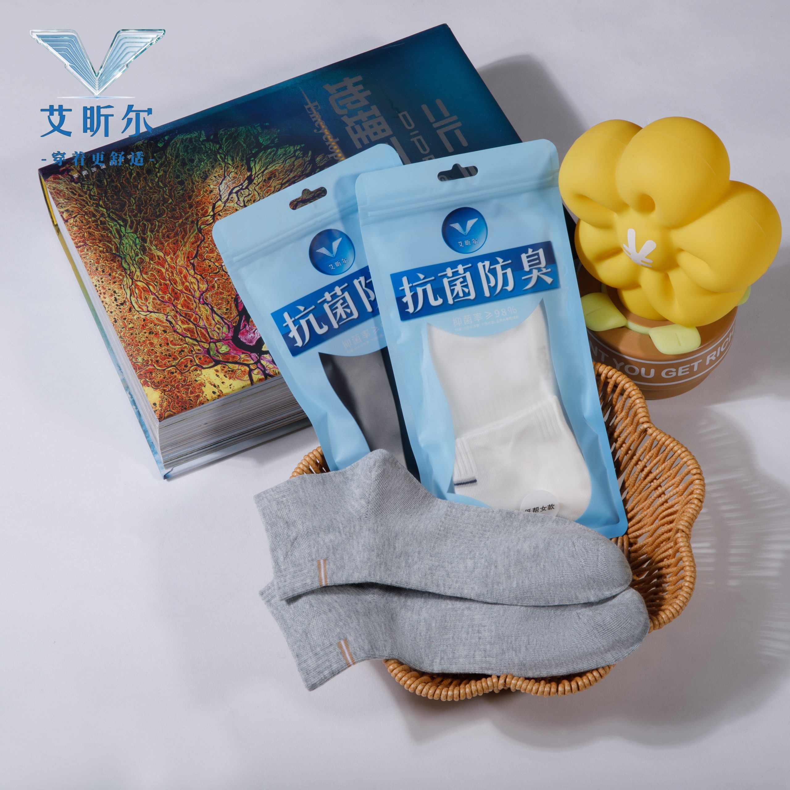 艾昕尔抗菌女款棉袜 抗菌防臭柔软舒适棉袜-3双装