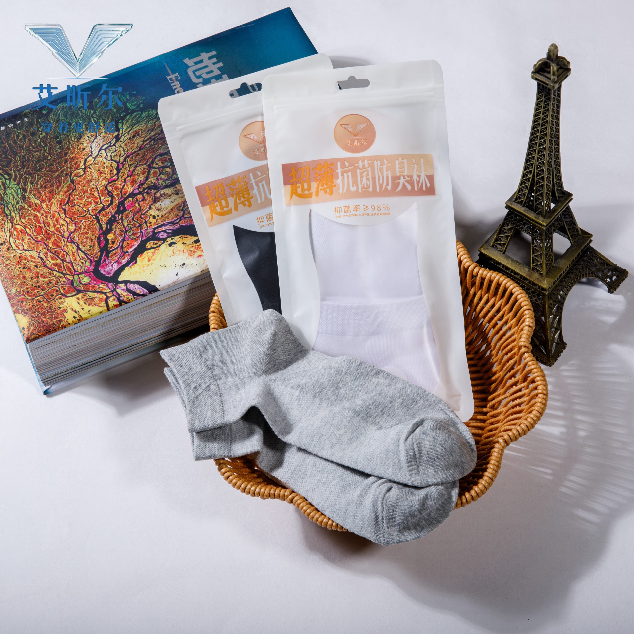 艾昕尔超薄男士低帮袜 轻薄网面透气舒适棉袜-3双装