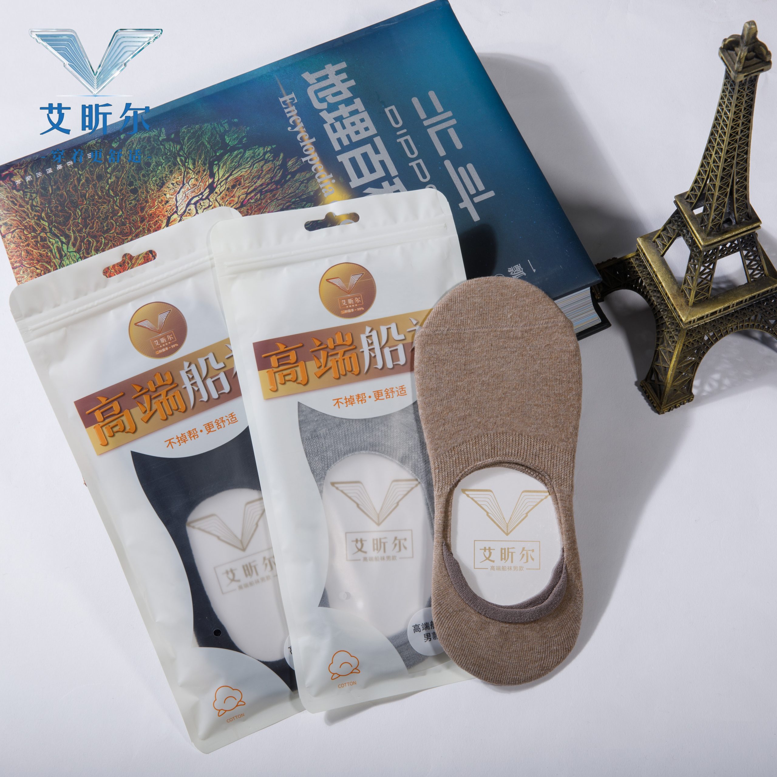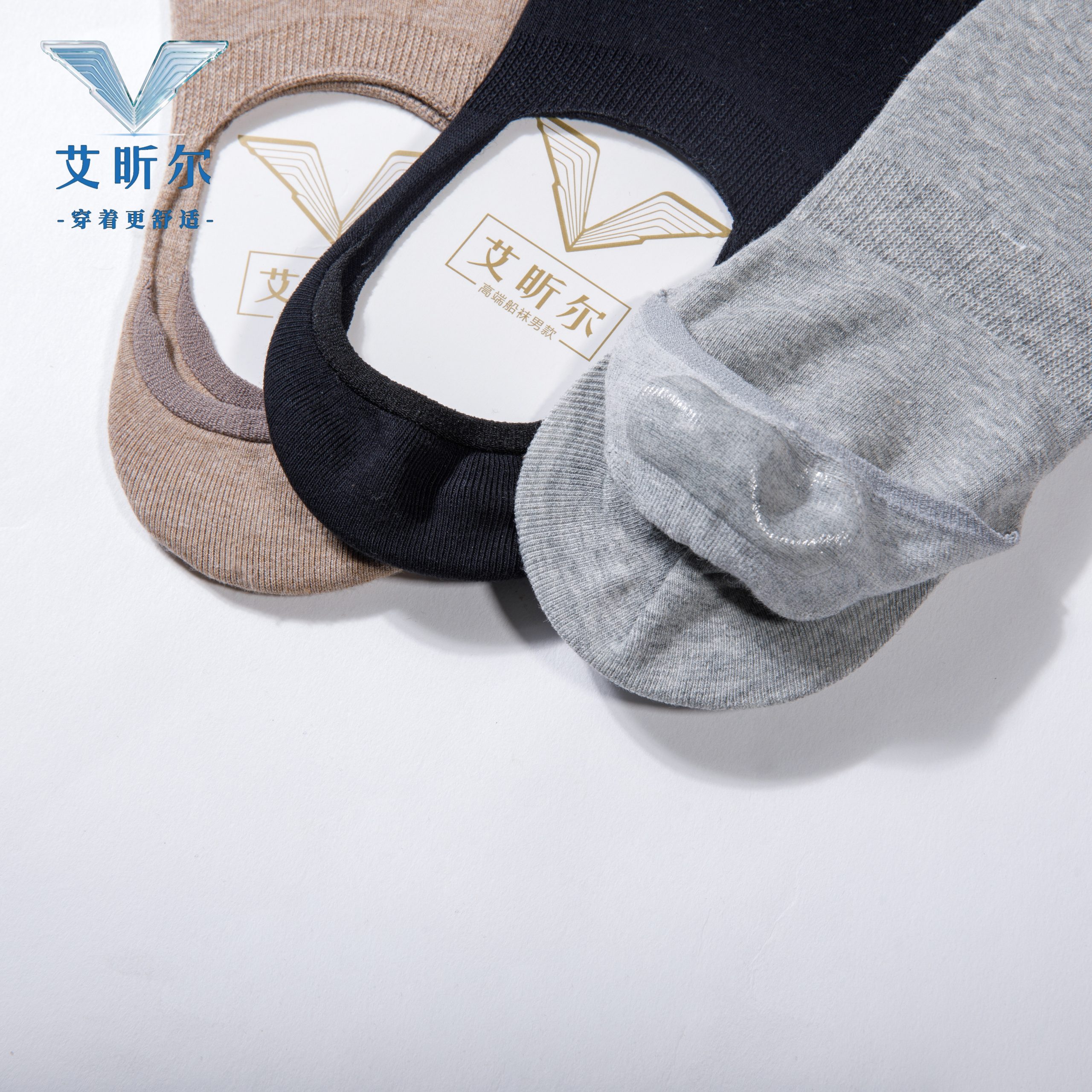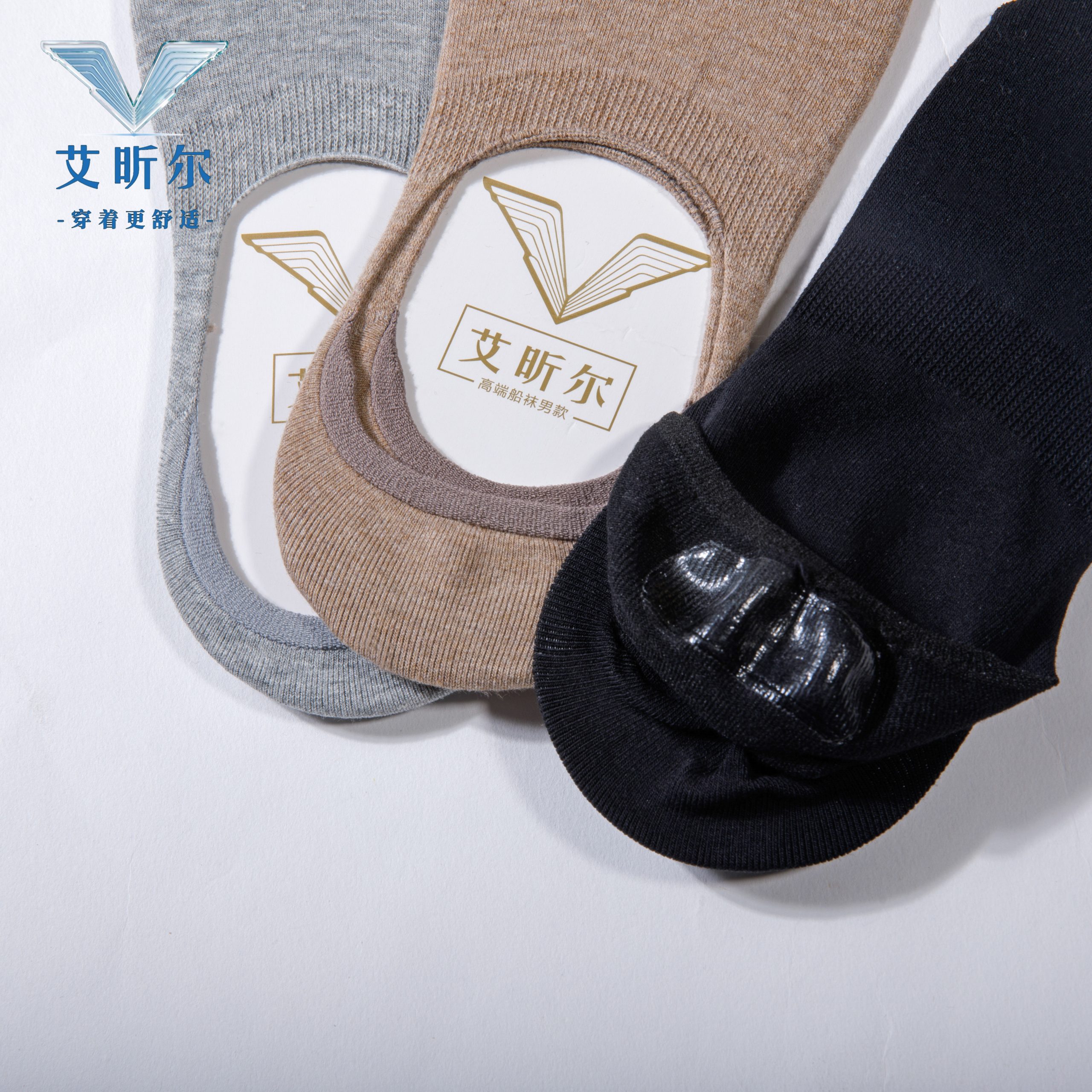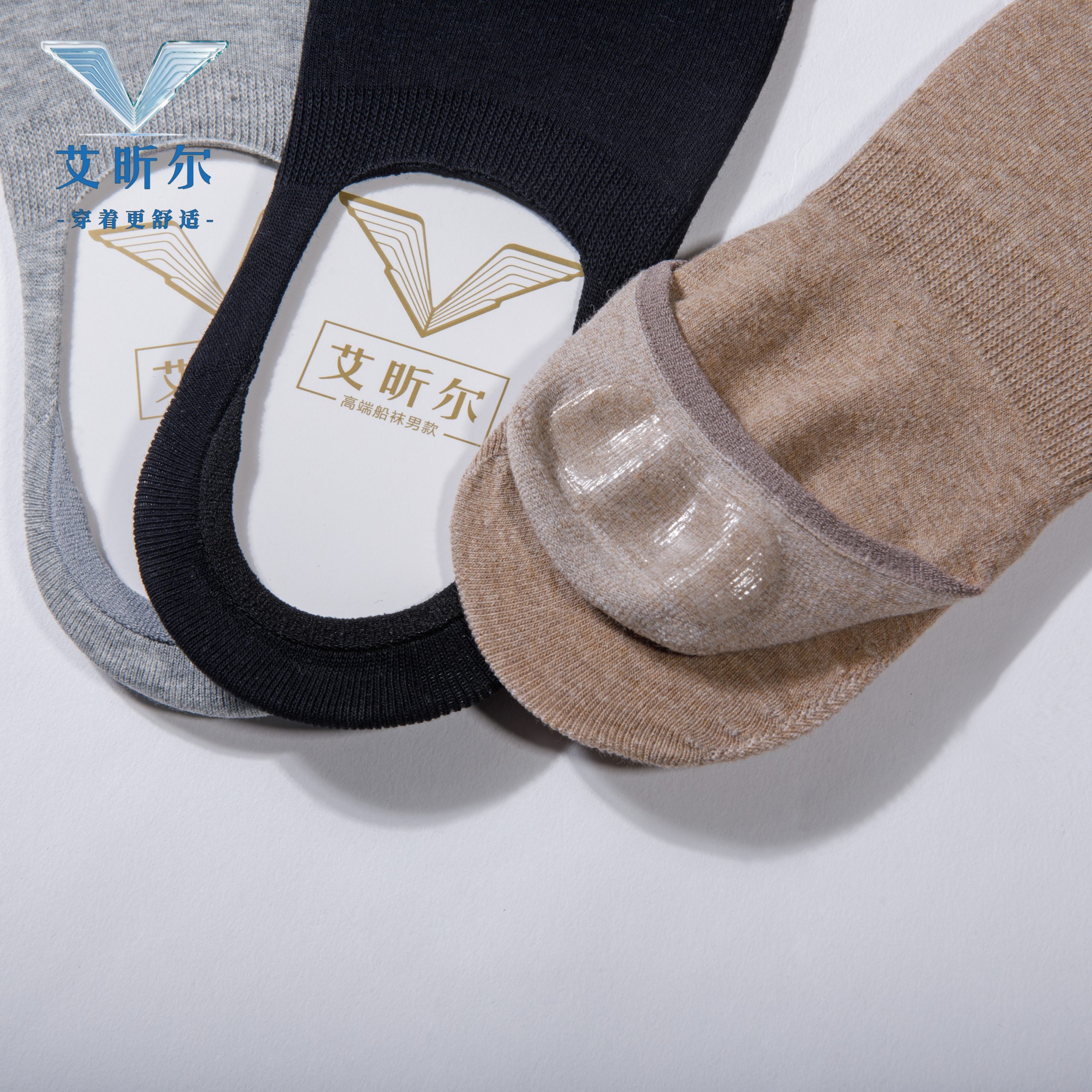 艾昕尔高端男士船袜 防敏硅胶健康舒适棉袜-3双装